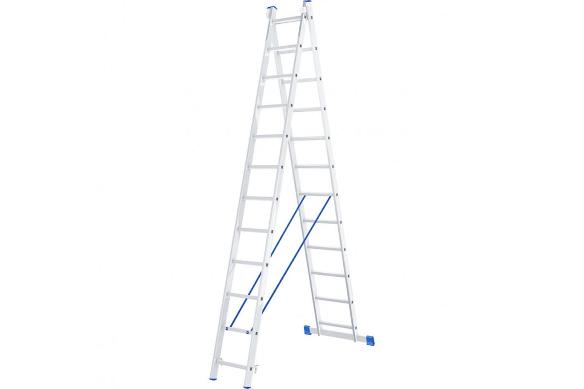 Алюминиевая двухсекционная лестница СИБРТЕХ 2х12 ступеней 97912 подходит для выполнения работ на высоте до 6.1 м.