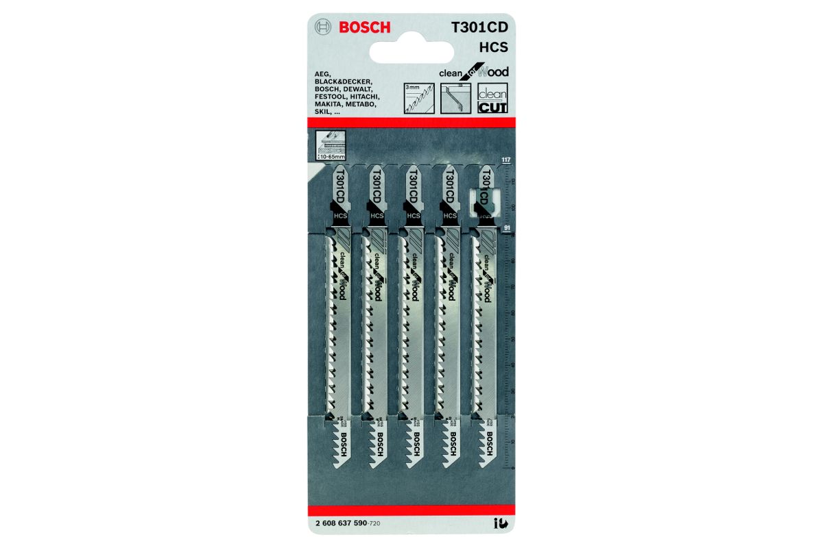 Пилка для лобзика BOSCH T301CD (2.608.637.590) мягк.дерево\ДСП, 117мм, шаг 3.0, HCS, 5шт