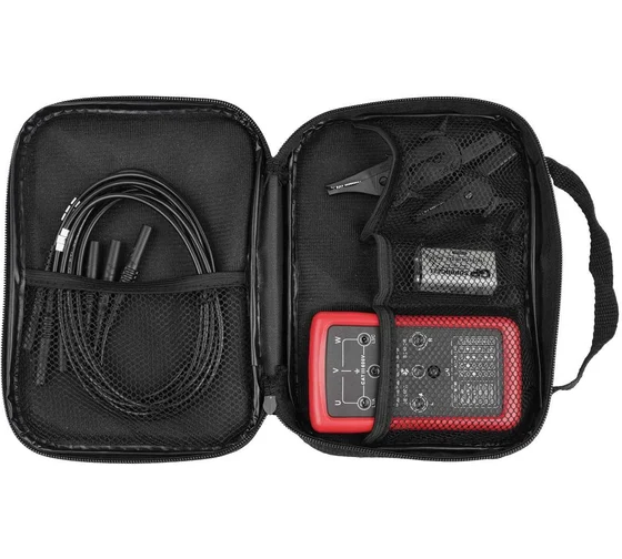 Все необходимое в комплекте. Устройство готово к работе прямо из коробки т. к. в комплект поставки входят тестовые провода, зажимы типа “крокодил” для подключения к сетям или оборудованию, а также подходящий элемент питания. Также предусмотрен чехол для безопасного хранения и транспортировки указателя последовательности фаз RGK RP-69.
