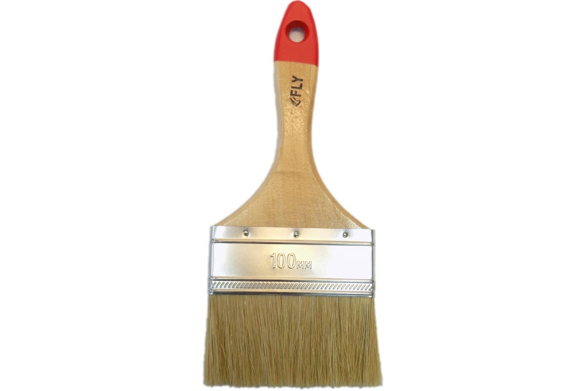 Плоская кисть, натуральная щетина, 100мм FLY Standard 02-100 позволяет работать со всеми типами лаков и красок, проста и эффективна в эксплуатации. Имеет увеличенный объем ворса, оснащена усиленной ручкой, обрамлена металлическим бандажом.