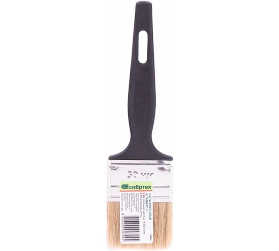 Флейцевая кисть Сибртех «Стандарт» 82504, 50*6, с натуральной щетиной и пластиковой ручкой оптимально подходит для финишной обработки поверхностей и устранения мелких дефектов после использования кистей с более жесткой щетиной. Кисточкой средней ширины удобно окрашивать небольшие детали, плинтуса и рамы. Рабочая часть выполнена из свиной щетины с добавлением искусственной, таким образом достигается ее высокая износостойкость и устойчивость к растворителям.
