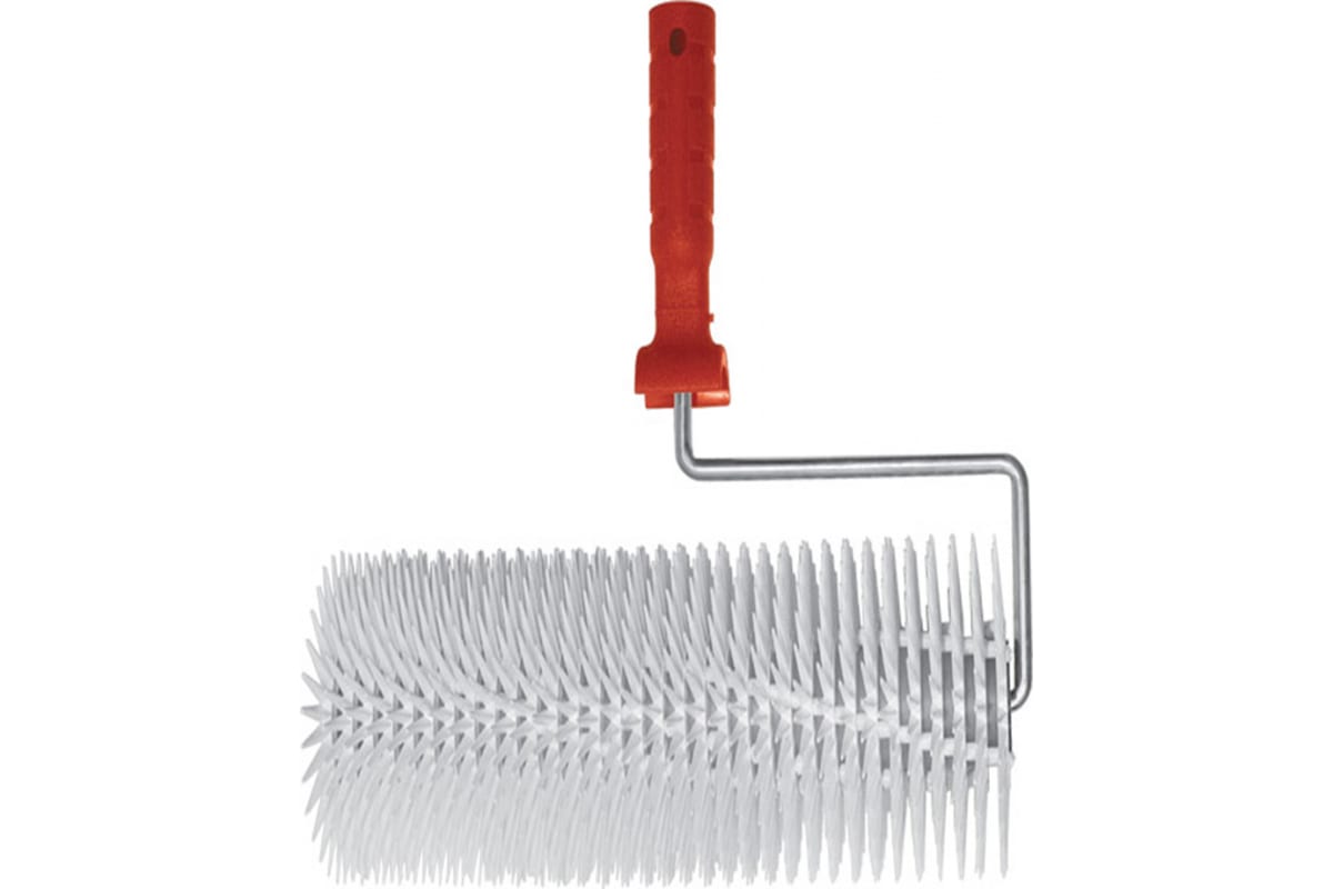 Игольчатый пластиковый валик РОС Макси 04170 применяется для удаления воздушных пузырьков из раствора при укладке наливных полов. Пластиковая рукоять способствует удобству в работе. Инструмент имеет небольшой вес, так как иголки изготовлены из пластмассы. Длина валика составляет 240 мм, что позволяет его использовать в узких и труднодоступных местах.