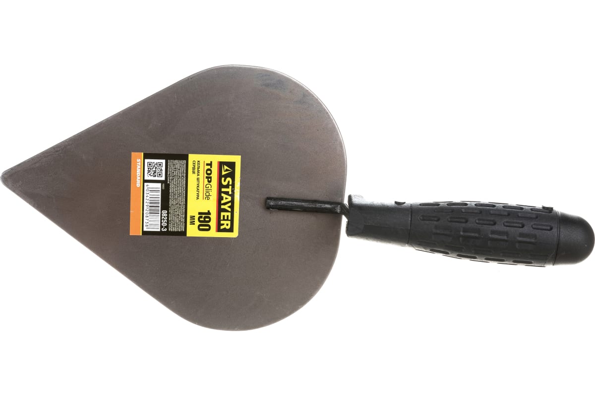 Кельма штукатура с пластмассовой ручкой STAYER STANDARD КШ 08250-3 служит для удобного нанесения и равномерного распределения штукатурных смесей по необходимым поверхностям. Инструмент удобен в использовании. В зоне обхвата расположена пластиковая ручка. Рабочее полотно изготовлено из прочной стали и защищено от ржавчины при помощи лакового покрытия.